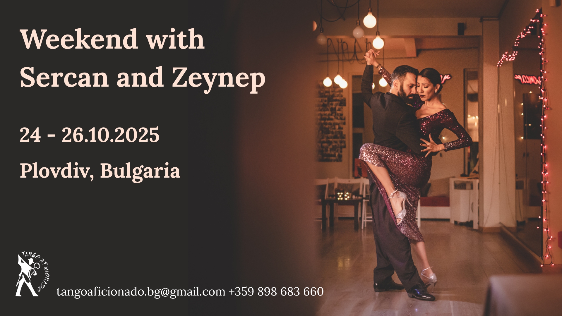 Развълнувани сме да ви поканим на един прекрасен танго уикенд с невероятните Зейнеп Актар и Серджан Иижит! Очакват ви 4 интересни урока и две милонги, които да ви вдъхновят във вашият танго път.